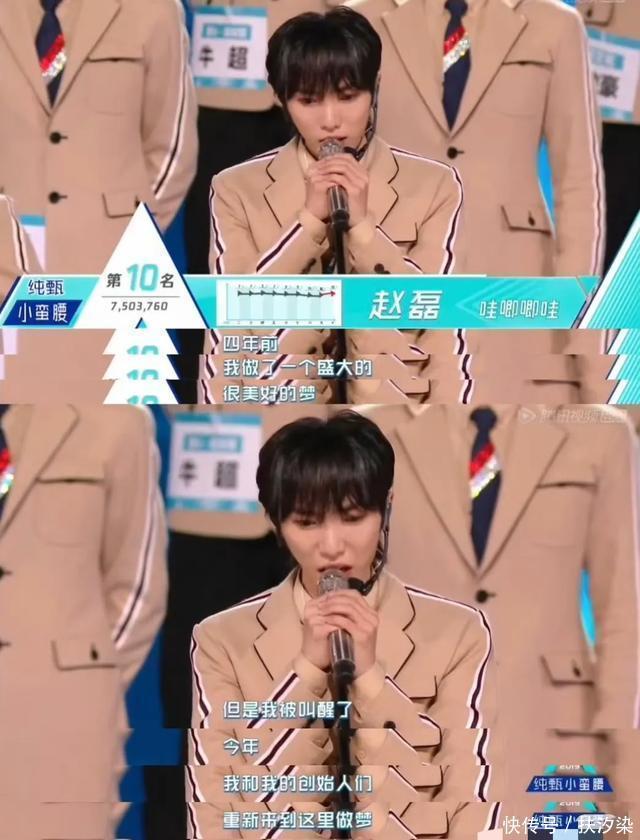 后来组合没那么火了,赵磊又跑去参加了《创造营》,尽管只获得了第10名,还是成功成团,他成团时还表白粉丝要和她们一起走下去!